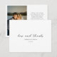 Modern flat wedding thank you cards featuring a simple design with classic serif and elegant script fonts. Use the template to add your favorite photo and personalized message.