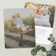 This simply stylish custom photo wedding thank you card template features a warm, minimalist, modern design. The default shape is rounded corners, but standard corners also work wonderfully with this design, so try both looks and see which one grabs you! We've added a semi-transparent gray layer between the photo layer and the text layer to allow the text to stand out more by reducing the sharpness of the photo. So when you add your photo in editing mode, you'll notice this change in its appearance. The front features your photo, first names and date and a 'thank you' message in a unique script that we first wrote by hand and then adapted for use here. The front text is white. When you edit the front to show your own names, you might change the format to show your first names with last name, or 'Mr. and Mrs......' or whatever suits your style. Or you might choose to delete our sample date without replacing it with your own date, for a simpler look. On the back, we've included space for you to add a second photo of your choosing. So please remember to replace our sample photo on the back with your own photo, as well as the photo on the front! We've set the background of the space below that photo on the back as transparent, so that the color of the paper will simply serve as the base color. You can choose a color for the background, if you prefer. The default text color on the back is black, but you can change this if you prefer another color. You can also change the font and the text size. We've put some sample text on the back for you to replace with your own message as you see fit, but please don't feel restricted by this. If you prefer delete our sample text entirely and keep the space under the photo on the back totally blank so that you can write a handwritten note on each card instead, you can do that. Or you might want to replace our text with your own message of gratitude and your own closing and then hand sign your names when you receive the cards. In any case, please do remember to remove all of the sample/placeholder text on both sides as well as both of the sample photos. We've chosen matte rather than semi-gloss as the default paper choice, as it is well suited to writing your own message on and won't smudge. You can of course change this to semi-gloss, or you might consider upgrading to something with a texture such as zazzle's 'Laid' or 'Felt White', which can add a feeling of warmth and depth. We hope you'll enjoy experimenting with various aspects of this stylish modern wedding thank you card template's appearance and make it uniquely yours with the intuitive design tools, your favorite photos and your inspiration!