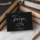 A simple, modern graduation party thank you card featuring an elegant handwritten-style “Thank You” on the front. A minimal doodle illustration of a graduation cap with tassel adds a playful yet refined touch. The back is left blank for your personal message, making it easy to write a heartfelt note and show your appreciation for celebrating this special milestone.