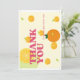 Olha, eles fizeram uma coisa boa. Eles merecem mais do que um texto, mas talvez não um ensaio manuscrito. Este cartão é o meio-termo perfeito. É alegre, está coberto de frutas e, mais importante, contém um trocadilho laranja sutil que prova que você quase se esforçou. Esprima alguma gratidão sem suar a camisa. Perfeito para aquele nível específico de 'obrigado' que está acima de "e-mail", mas abaixo de "nomear meu primeiro filho em sua homenagem".