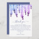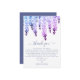 Cartão de Agradecimento de Casamento com Aquarela de Flor de Wisteria apresenta sua foto favorita com o texto "Obrigado" em tipografia roxa moderna acentuada com flores de wisteria em azul, roxo e lavanda em aquarela. Parte de uma coleção projetada por Evco Studio www.zazzle.com/store/evcostudio