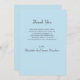 Um simples cartões de agradecimentos de chá de fraldas de bebê azul com verso. Tipo de script e tipo de servidor.