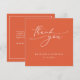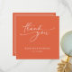 Expresse sua gratidão sincera aos seus convidados de casamento com este cartão de agradecimento elegante. O fundo quente do Pôr do Sol de Verona fornece um toque belo e convidativo, enquanto a caligrafia graciosa adiciona um toque de sofisticação atemporal. O design simples e minimalista mantém o foco na sua mensagem de agradecimento. Personalize o interior com sua própria nota manuscrita para criar um verdadeiro tesouro especial.