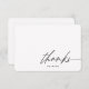 Obrigado gráfico que você define em um script preto fino em um fundo branco. Digite uma mensagem pessoal no verso ou exclua-a para escrever manualmente a sua própria mensagem. Perfeito para um casal, chá de panela, casamento, negócios, profissional ou pessoal.