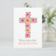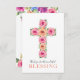 Obrigado alguém com este simples design religioso apresentando uma cruz colorida de aquarela pastel com uma mensagem totalmente editável, "Obrigado pelo BÊNDIO." Back tem espaço reservado para sua própria mensagem personalizada, seguida de, "com amor" e um espaço reservado para seu nome de família ou assinatura.