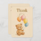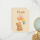 Expresse sua gratidão da maneira mais doce com este adorável cartão de agradecimento simples para aniversários! Com um ursinho fofo segurando balões pastéis, este cartão é perfeito para enviar agradecimentos após uma celebração de aniversário. Com cores pastéis suaves e um design encantador, certamente trará um sorriso a qualquer pessoa que o receber. Personalize-o com sua própria mensagem para torná-lo ainda mais especial. Ideal para aniversários de crianças ou celebrações de bebês, este cartão de agradecimento será uma lembrança memorável.