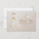 Envie sua gratidão com estilo com este elegante cartão de agradecimento simples, projetado para complementar nosso conjunto de chá de noiva em rosa poeirento e eucalipto. A frente apresenta um vestido de noiva em aquarela com sotaques dourados suaves e flores neutras, enquanto a parte de trás inclui uma mensagem sincera e um motivo botânico seco. Perfeito para chás de noiva de outono, festas no jardim ou celebrações românticas.