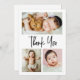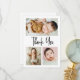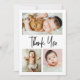 Personalize este chá de bebê graças a você com fotos bonitas do seu bebê. Agradeço à sua família e amigos que lhe deram o seu amor e apresentam o seu novo bebê com imagens que podem acalmar durante muitos anos à medida que o bebê cresce. Tipo de script de handlettering "Obrigado" moderno e exclusivo. Uma maneira maravilhosa de agradecer aos seus convidados do chá de bebê assim que o bebê nascer.