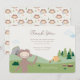 This warm and playful Slumberkins Bigfoot design features the friendly Bigfoot character set in a cozy outdoor scene with rolling green hills, pine trees, mountains, and a cheerful campsite. Soft, earthy colors and gentle illustration details create a comforting and welcoming atmosphere that perfectly captures the heart-centered Slumberkins style. The thoughtful layout leaves plenty of space for a customizable thank-you message, making it a meaningful way to share appreciation after a birthday celebration. Ideal for toddler and early childhood birthdays, this design feels heartfelt, adventurous, and full of warmth.