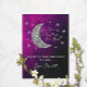 Sobre o chá de fraldas da lua com lua de prata e estrelas contra um fundo negro e rosa do céu noturno roxo