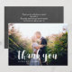Cartão de agradecimento com uma linda fonte manuscrita em branco sobre a foto de sua escolha. O verso apresenta um fundo de quadro-negro com fontes correspondentes.
