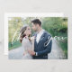 Simplesmente chique e elegante, nossa coleção de casamento de inverno minimalista apresenta tipografia cursiva elegante e uma fotografia completa do seu evento moderno. Agradeça aos seus convidados com um adorável cartão de agradecimento de casamento com sobreposição de roteiro branco simples na sua foto romântica de recém-casados.