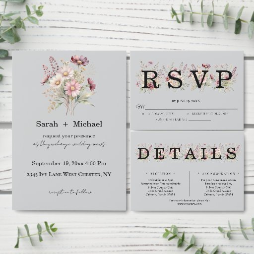 Light Grey Spring Floral Wedding Invitation SuiteCriado por Phyllis Waugh