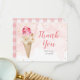 Cartão de agradecimento Sorvete Pink Blush Bridal Shower Glitter Dourado