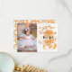 Cartão de convite de aniversário da menina do tema das bruxas bonitas com ilustração de fantasmas assustadores em cor de água laranja com um padrão fantasma preto e branco de impressão. O texto diz "Spooky One". Arte original de Caroline Bonne Müller