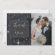 Expresse sua gratidão com a elegância celestial usando nosso cartões de agradecimentos de casamento da Starry Night Moon Phases Zodiac Celestial Collection. A frente desta placa apresenta as palavras "Obrigado" em uma fonte bonito de script em ouro, definida contra um fundo estrelado preto e branco cativante. Uma foto da noiva e do noivo adiciona um toque pessoal, fazer cada carta como um bem-estar apreciado para os seus convidados. Na parte de trás do cartão, você encontrará uma nota personalizada de agradecimento do casal, junto com os nomes da noiva e do noivo. Outra foto do casal feliz completa o design, criando uma bela e sentida expressão de obrigados. Este cartões de agradecimentos de casamento fotográfico é perfeito para qualquer um que ama beleza celestial, astrologia, ou o fascínio místico do céu noturno. É uma forma na moda e significativa de mostrar seu apreço aos amigos e à família pelo seu amor e apoio durante este período especial. Mande seus obrigados em estilo celeste com nosso cartões de agradecimentos de casamento de fotos da Coleção Celestial Zodiac Celestial da Starry Night Moon Phases. Deixe a beleza do cosmos iluminar sua gratidão e criar memórias duradouras para você e seus convidados.