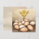 Celebrate Easter with a touch of playful charm. This greeting card features an original illustration of a confident little chick standing proudly on a pile of beautifully decorated eggs. With its cheerful pose and warm pastel tones, the artwork captures the joyful spirit of spring and new beginnings.