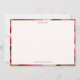 This thank you note features an abstract geometric pattern border in pink, gold, brown, and red tones with "thank you" at top and your custom name at bottom. Customizable with any name. For thank you notes, everyday correspondence, or personal stationery.