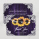 Cartão De Agradecimento Sunflower Purple Rustic Wood Floral Lace Wedding