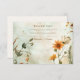 Ponha um tom quente e rústico para sua celebração com este design de casamento de flor silvestre ouro. Apresentando flores moles de aquarela, tons sujos e folhagem delicada, ele captura a magia de uma transição de verão para outono. Perfeito para casamentos ao ar livre, locais de celeiro ou casais que amam um estilo natural e romântico.