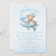 Express your gratitude with this charming thank you card, featuring the popular watercolor teddy bear pilot soaring on a light blue vintage airplane through soft clouds. The design is ideal for thanking guests after a baby shower, first birthday party, or any celebration for a little aviator. The card includes customizable space for a heartfelt message of thanks and is presented on a light blue background, making it a sweet and memorable keepsake for your friends and family.