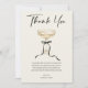 Expresse sua gratidão com estilo com este elegante modelo de agradecimento de chá de noiva. O design minimalista apresenta uma ilustração chic em aquarela de um clássico copo de champanhe coupe amarrado com um laço de fita preto sofisticado. Com sua bela tipografia em letra cursiva e fundo creme clássico, este design captura perfeitamente uma estética "dinheiro antigo", vintage moderno ou minimalista. Personalize facilmente o texto do modelo com sua própria mensagem sincera, nome e despedida. Perfeito para agradecer os convidados após um sofisticado chá de noiva, festa de despedida de solteira elegante ou celebração de noivado.