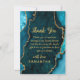 Cartão De Agradecimento Teal Blue and Gold Agate Sweet Sixteen