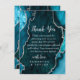 Cartão De Agradecimento Teal Blue and Silver Agate Marble Wedding