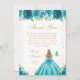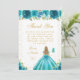 Cartão De Agradecimento Teal Floral Blonde Hair Princess Birthday Party