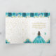 This elegant and glamorous birthday thank you card features a beautiful princess with brunette hair and fair skin in a teal blue ball gown. The text combines handwritten script and modern sans serif fonts for a classy and sophisticated look. The floral arrangements, butterflies and gold confetti create the perfect blend of rustic and chic.