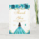 Cartão De Agradecimento Teal Floral Dark Skin Girl Birthday
