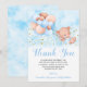 Cartão De Agradecimento Teddy Bear Blue Balloons Gold Stars Baptism