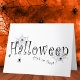 Teias de aranha com aranhas penduradas sobre a palavra de Halloween e a tradicional expressão Trick ou Treat