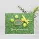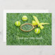 Tênis com raquete e bolas em Cartões de agradecimentos de grama verde