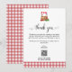 "Locally Grown Baby on the Way" baby shower theme Thank you card, featuring gingham pattern design and watercolor farm vendor market stand. Includes custom QR code for photo gallery from the shower. Link to your own cloud drive to share to your guests.