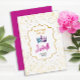 Apresentamos nossos cartões de agradecimento encantadores, perfeitos para expressar gratidão com um toque de charme real. Cada cartão apresenta um design de tiara colorido e elegante, delicadamente pintado à mão com aquarelas, sobre um fundo branco simples para um visual limpo e elegante. A mensagem personalizável manuscrita adiciona um toque pessoal, tornando sua apreciação verdadeiramente especial. Enquadrados em acentos dourados cintilantes, esses cartões exalam elegância e sofisticação dignos de uma princesa. O verso apresenta um fundo rosa vibrante, adicionando um contraste vibrante e divertido. Seja para agradecer convidados por uma celebração de aniversário ou um evento temático de princesa, esses cartões farão com que cada destinatário se sinta querido e apreciado!