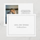 Elegant wedding flat thank you card featuring a simple design with serif and script fonts inside of a border. Design includes "love and thanks" along with your names on the front. Use the template to add your personalized message and photo.