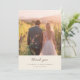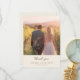 This is a romantic style image featuring a couple walking hand in hand through a vineyard during sunset. The warm golden hues of the setting sun bathe the scene, creating an enchanting and serene atmosphere. The bride's elegant gown and groom's classic suit add to the timeless charm. Perfect for expressing gratitude after a beautiful wedding day, this card captures the essence of love and celebration.