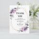 Elegante e moderno cartão de agradecimento de casamento de verão com flores apresenta um buquê de rosas peônias aquareladas em tons de ameixa roxa, rosa empoeirado, rosa desbotado, mauve, salva com folhas botânicas verdes exuberantes e eucalipto com fundo geométrico dourado. Encontre mais designs e variações correspondentes na minha loja "blissweddingpaperie". E sinta-se à vontade para entrar em contato comigo para personalização adicional ou itens correspondentes.