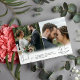 Cartões de agradecimentos de casamento com espaço para três fotos, duas no cobrir e uma foto maior no verso. Adicione um obrigado que você envia e seus nomes.