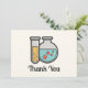 Cartões de agradecimentos com uma ilustração fofinha de um tubo de ensaio com um líquido amarelo e um balão/copo arredondado com um líquido verde com bolhas vermelhas.