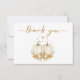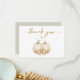 A cozy watercolor design featuring two creamy white pumpkins, a soft flowing bow, and a stitched heart surrounded by golden stars and autumn leaves. This elegant thank-you card perfectly matches the Two Sweet Little Pumpkins twin baby shower collection — ideal for expressing heartfelt gratitude to your guests.