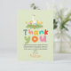 Este cartão de agradecimento de aniversário de 1 ano de criança fofo e divertido apresenta um ganso bobo com um chapéu de festa em um campo de flores, com um padrão 'um ganso bobo' correspondente no verso, e pode ser personalizado com sua própria mensagem. O design perfeito de fazenda floral para o primeiro aniversário colorido do seu pequeno!
