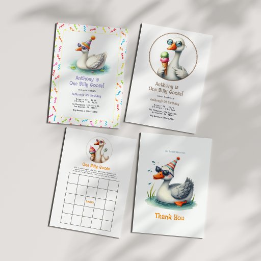 Envie um sincero “Obrigado” com nosso encantador Cartão de Agradecimento Um Ganso Bobo! Com um ganso adorável usando chapéu de festa e se divertindo em um lago com lírios ao lado do convite divertido “Nosso Um Ganso Bobo diz: Obrigado”, este cartão inclui um envelope correspondente. Perfeito para encerrar um primeiro aniversário cheio de diversão ou qualquer celebração alegre, certamente vai deliciar convidados de todas as idades.