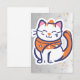 Um cartão de agradecimento plano de gato de tuxedo branco e rosa muito feliz