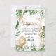 Elegante cartão de agradecimento de aniversário temático de safári neutro, apresentando vegetação tropical em aquarela, animais da selva em dourado falso (leão, girafa e macaco), confetes dourados e um modelo de mensagem de agradecimento de aniversário simples e fácil de personalizar.