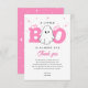 Um pequeno boo está para nascer Festa de Bebê de Halloween. Contra um fundo branco, a frase “Um Pequeno Boo Está Quase Chegando” toma o centro das atenções em uma tipografia caprichosa inspirada em globos oculares em rosa, completa com um fantasma peek-a-boo e estrelas suaves em rosa para adicionar um toque de charme feminino. Perfeito para celebrar futuras mamães que amam um toque de assustador com muita doçura, este design combina elegância sombria com um charme adorável.