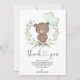 Obrigado seus hóspedes com este adorável cartões de agradecimentos com um ursinho de pelúcia bonitinho segurando dois balões verdes e pastéis em forma de coração enfeitados com uma elegante coroa verde. Clique no botão "personalizar mais" se quiser reorganizar e formatar o estilo e a posição do texto.