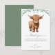 Convide amigos e familiares para celebrar o aniversário do seu filho com este convite de 1º aniversário adorável com bezerro highland e folhagens de eucalipto, acessórios e presentes de festa. Este convite de aniversário de vaca apresenta uma vaca highland pintada à mão em aquarela, perfeita para amantes de fazendas e vacas! O design é moderno e atual, com uma paleta de cores simples em verde-salvia e o texto "Holy Cow". DIREITOS AUTORAIS © 2023 Judy Burrows, Black Dog Art - Todos os Direitos Reservados. Cartão de Agradecimento de Aniversário de Vaca Highland Boho Folhagem Animal de Fazenda