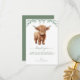 Convide amigos e familiares para celebrar o aniversário do seu filho com este convite de 1º aniversário adorável com bezerro highland e folhagens de eucalipto, acessórios e presentes de festa. Este convite de aniversário de vaca apresenta uma vaca highland pintada à mão em aquarela, perfeita para amantes de fazendas e vacas! O design é moderno e atual, com uma paleta de cores simples em verde-salvia e o texto "Holy Cow". DIREITOS AUTORAIS © 2023 Judy Burrows, Black Dog Art - Todos os Direitos Reservados. Cartão de Agradecimento de Aniversário de Vaca Highland Boho Folhagem Animal de Fazenda